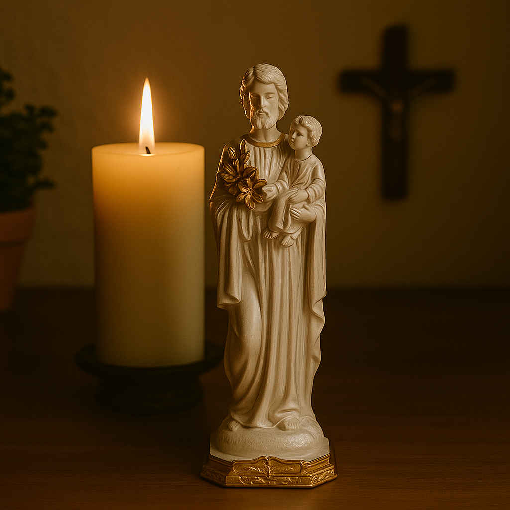 🕊️ Imagem de São José nas cores branco e dourado – 20cm de altura