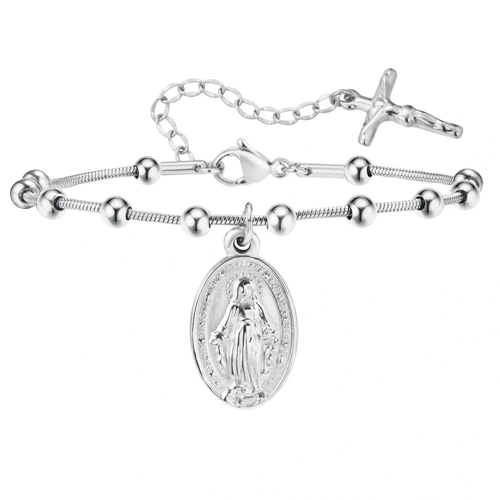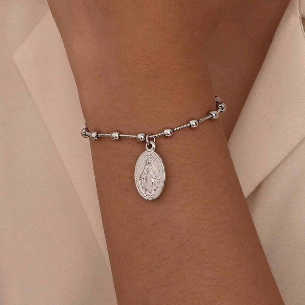 A Pulseira Nossa Senhora – Mãe Divina é um acessório que une espiritualidade. proteção e sofisticação. Disponível em quatro variações – dourado. prateado. rosé e uma combinação de prata com dourado – essa pulseira é ideal para quem deseja demonstrar sua fé com elegância.