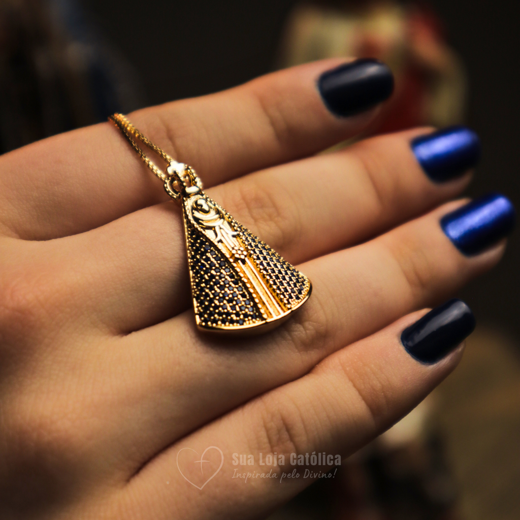 Colar Nossa Senhora Aparecida - Feito em Zircônia e Banhado a Ouro
