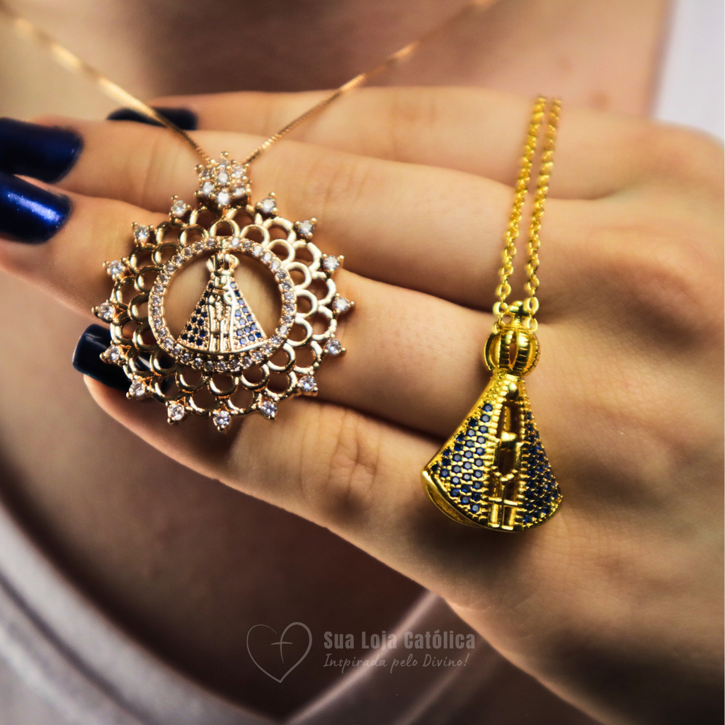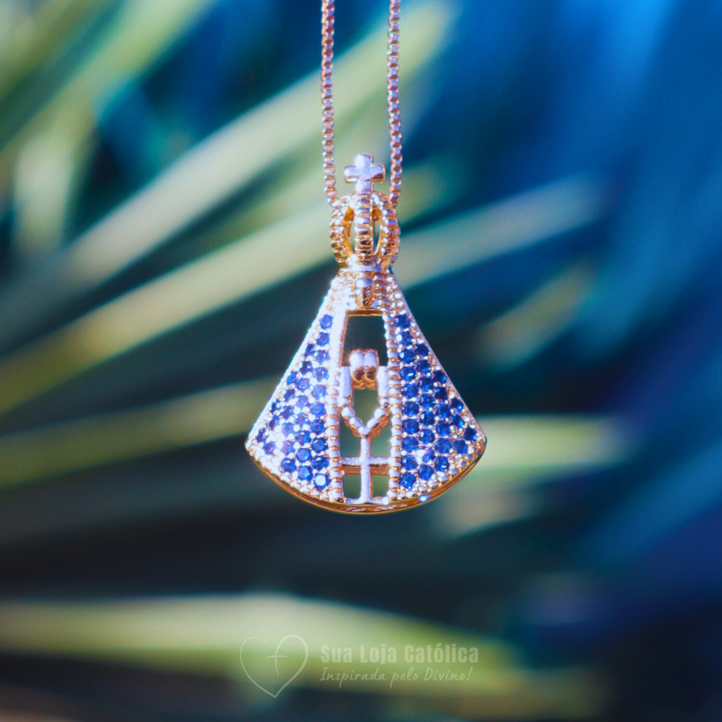 O Colar de Nossa Senhora Aparecida com Elos Brilhantes é uma joia que une fé e sofisticação. Banhado a ouro. ele traz a imagem de Nossa Senhora cercada por elos delicadamente cravejados com zircônias. que refletem a luz com elegância. Uma peça que simboliza proteção divina e brilho interior. ideal para quem quer expressar sua devoção com estilo.