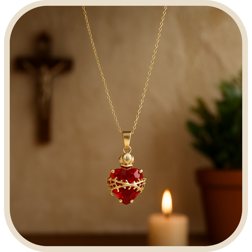 Elegante colar com o Sagrado Coração de Jesus. simbolizando amor. proteção e fé. Com design delicado e acabamento refinado. esta peça é perfeita para quem deseja carregar consigo a presença divina e a inspiração espiritual no dia a dia.