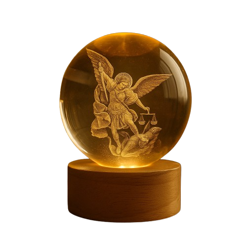 • 💡 Luminária São Miguel – Fé que Ilumina® – 12 cm. luz suave e presença espiritual acolhedora.