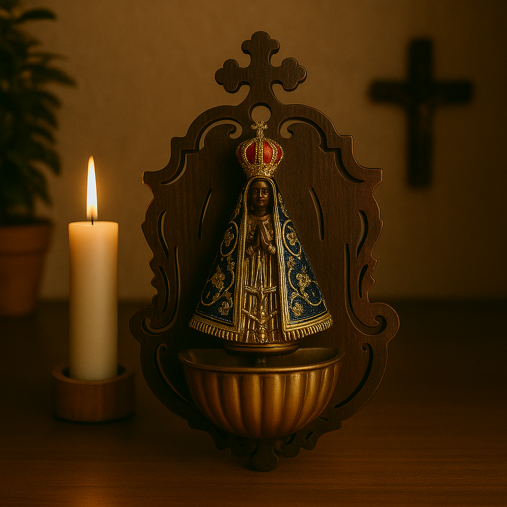 🌟 Porta Água Benta com representação de Nossa Senhora Aparecida