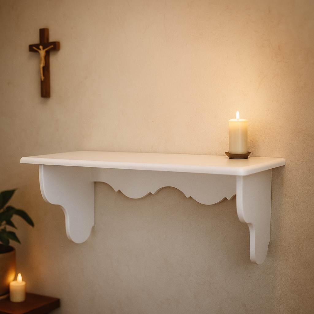 Elemento Decorativo: adiciona profundidade e interesse visual à parede. destacando seu cantinho de oração