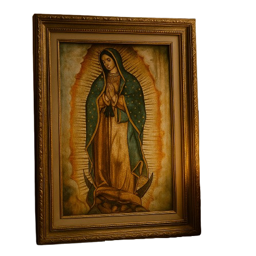 Este quadro resinado de Nossa Senhora de Guadalupe é uma peça de devoção e beleza única. trazendo a imagem da Padroeira da América com detalhes que inspiram fé e confiança. Com moldura dourada e acabamento em resina. une sofisticação e espiritualidade. sendo ideal para ambientes devocionais ou como presente especial de fé.