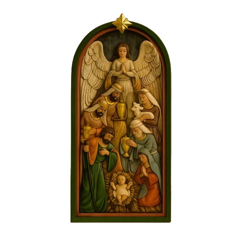 Imponente Quadro Presépio Sagrado em alto relevo. confeccionado em resina importada de alta qualidade. com acabamento detalhista que valoriza cada figura e transmite fé. proteção e espiritualidade ao lar. Perfeito para quem deseja decorar ambientes com elegância e devoção. mantendo viva a tradição natalina.