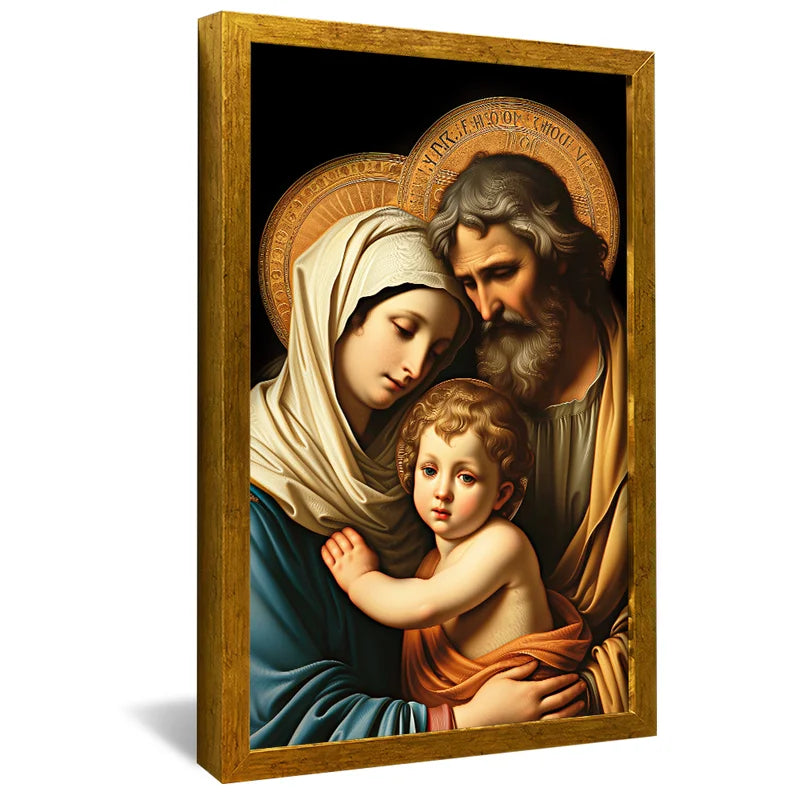Leve para o seu lar a presença protetora da Sagrada Família. representada neste quadro clássico com traços suaves e olhar acolhedor. A composição transmite serenidade. amor incondicional e unidade — valores essenciais para todo lar cristão.