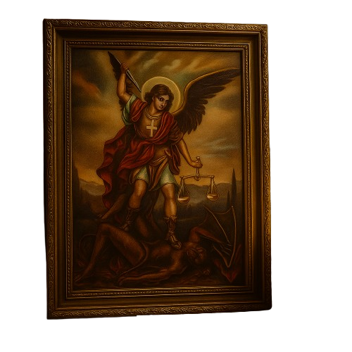 Este quadro de São Miguel Arcanjo é uma peça de fé e proteção. trazendo a imagem do arcanjo guerreiro que simboliza vitória contra o mal e amparo divino. Com moldura dourada e acabamento elegante. é ideal para quem deseja reforçar a espiritualidade no lar e transformar ambientes em espaços de oração e confiança.